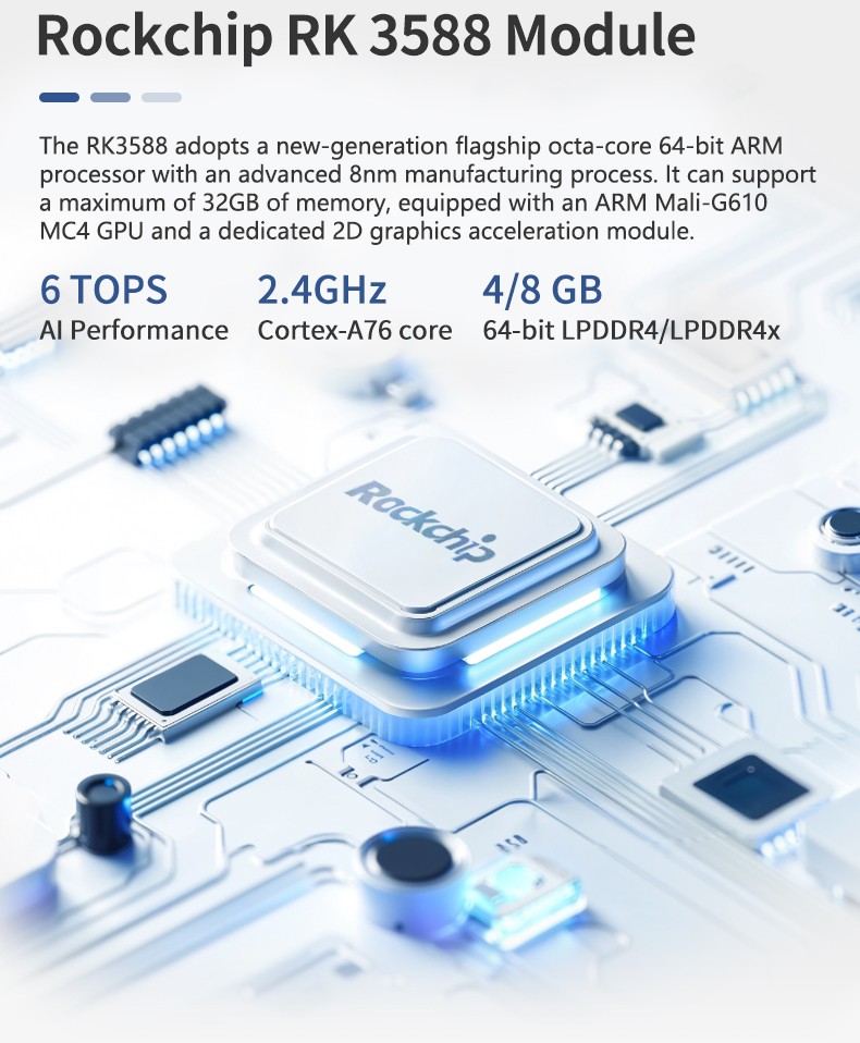 CPU | Rockchip RK3588 Quad Cores A76+Quad Cores A55 | ||
